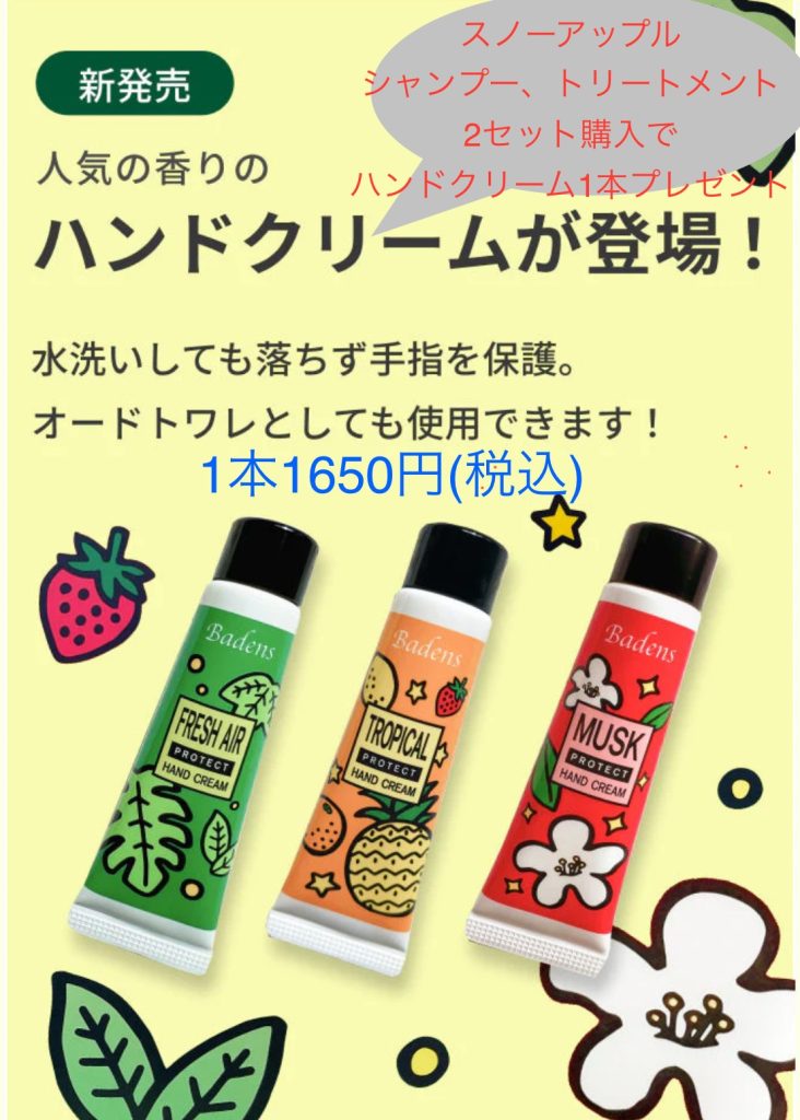 バーデンスハンドクリーム30g1650円を1本プレゼントさせて頂きます。